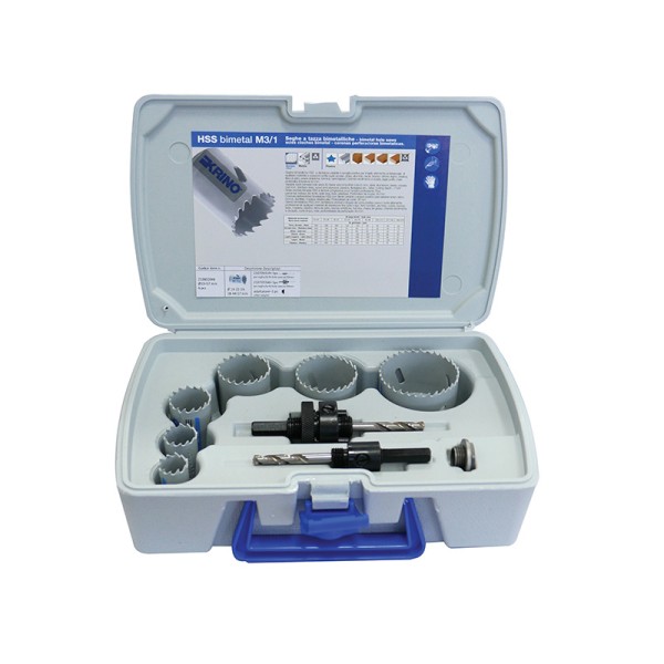 Krino Plumber's Holesaw Kit contains the six most frequently used plumber's holesaw sizes. These variable, bi-metal holesaws provide fast, smooth cuts in iron, steel, aluminium, brass, copper, cast iron, stainless steel, wood, plywood, plastics, fibreglass etc. Supplied in a durable plastic carry case for easy transportation and storage.