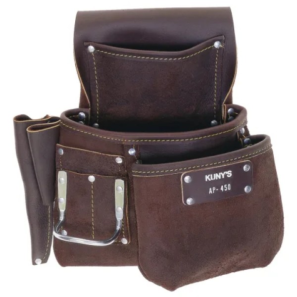 The Kuny's Journeyman Half Apron is made from all weather logger tan leather and features a back wall pocket and side tool holder. Comprises extra large main pouch with large reversed front pouch, easy accessible top pouch together with three small utility pockets, three back wall pockets and additional side tool slots for other tools.
