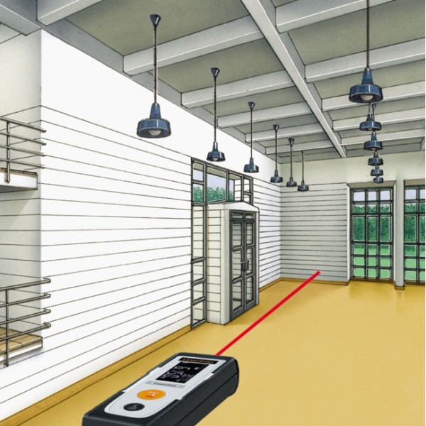 This laser distance meter is used to determine lengths, areas and volumes with pinpoint accuracy, ideal for measuring room sizes and calculating material quantities. The device has two selectable housing reference points (front, rear). The practical pocket clip and compact design make it easy to use. The housing is largely made of recycled plastic and makes a valuable contribution to sustainability. Supplied with battery.