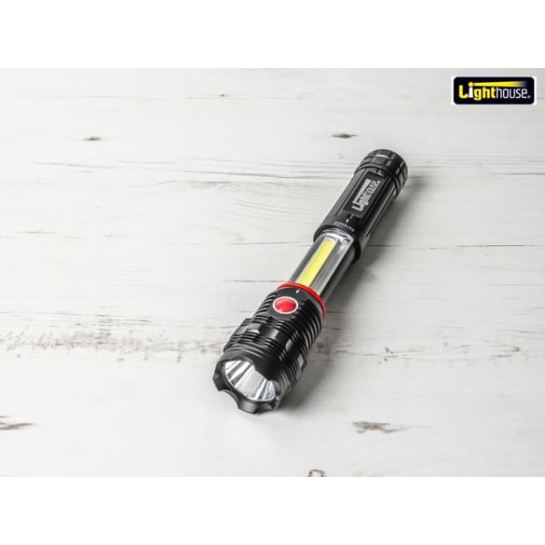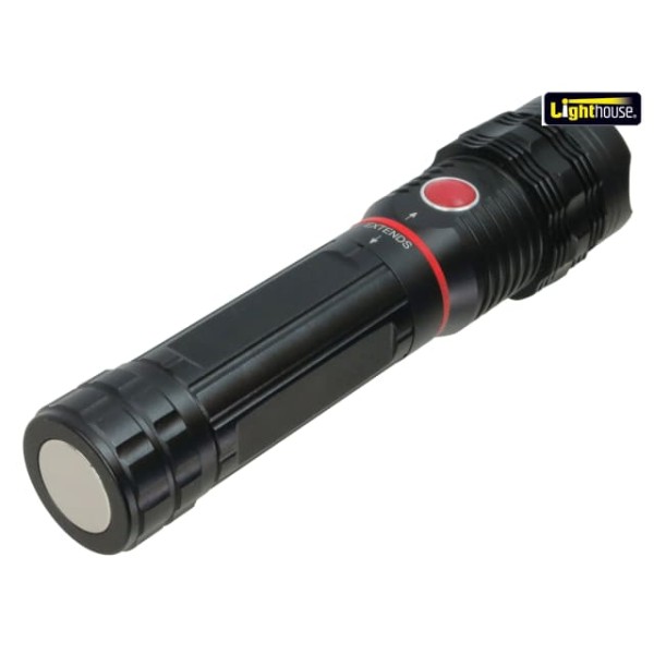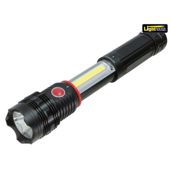 The Lighthouse Super Extender Inspection Light is a versatile 2 in 1 torch. Functions as a hand torch using its 3 Watt LED 150 lumens spot beam or as an inspection light utilising its slide out super-bright liner COB LED, that provides a powerful 200 lumens output floodlight, making it ideal for inspection work and general illumination.