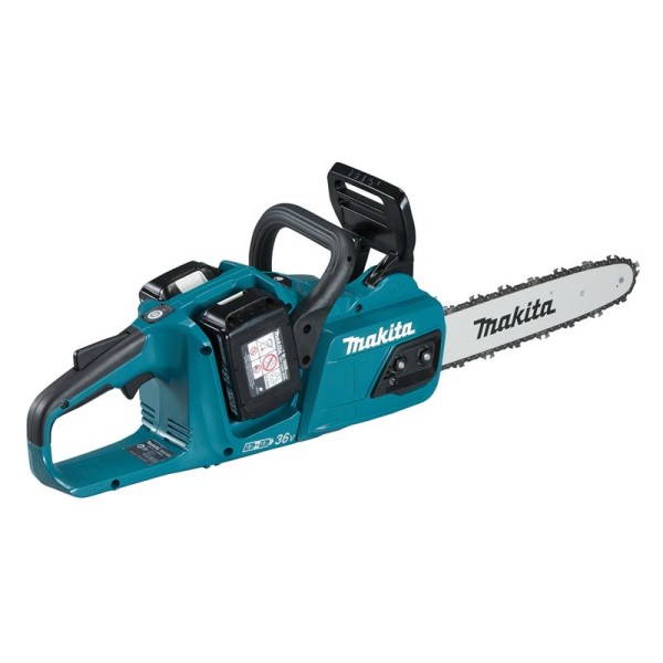 The Makita DUC305 Brushless LXT Chainsaw is powered by 2 x 18V Li-ion batteries in series to supply energy to the powerful 36V DC motor drive system. It has an efficient brushless motor with a soft start feature and an electronic brake for added user safety.