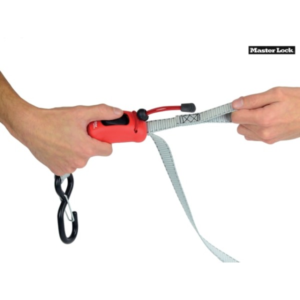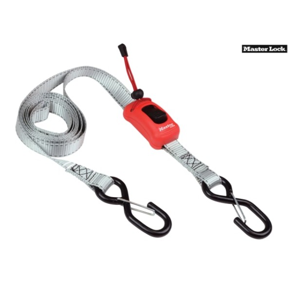 The Master Lock Pre-Assembled Spring Clamp Tie-Down is simple and easy to use. Adjust the length of the strap by using the easy to use push button. It has 2 x S hooks with security clips that keep the strap attached to the anchor points even when it's not under tension. The strap trap will secure the excess strap during the transportation of the load and store the strap easily when not in use.