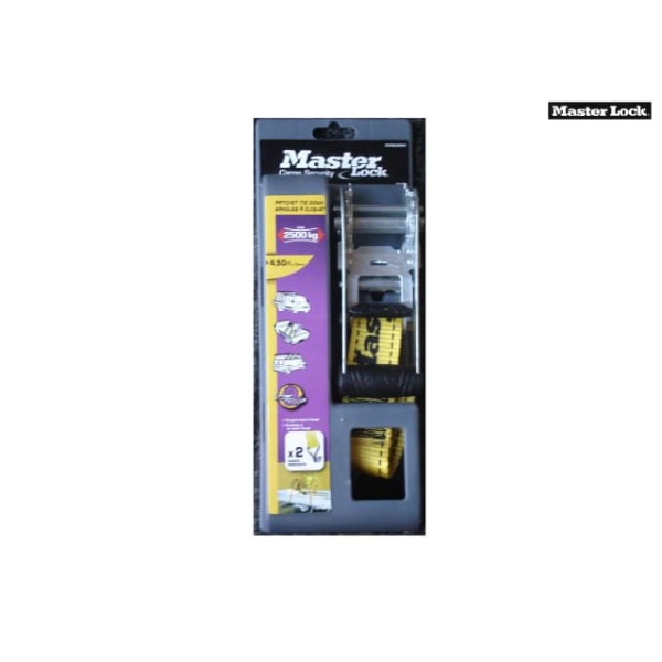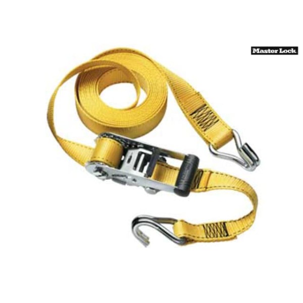 These Master Lock Heavy-duty ratchet tie-downs designed to secure luggage or other loads to cars, van roof racks and/or trailers. They are manufactured from very strong webbing material, will withstand all weather conditions and are fitted with an easy-to-use heavy-duty ratchet cam mechanism and J-type hooks.