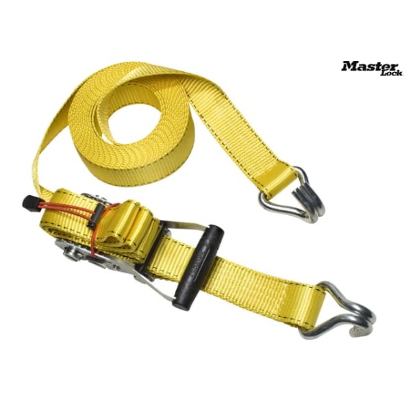 These Masterlock Heavy-duty ratchet tie-downs designed to secure luggage or other loads to cars, van roof racks and/or trailers. They are manufactured from very strong webbing material, will withstand all weather conditions and are fitted with an easy-to-use heavy-duty ratchet cam mechanism and J-type hooks.