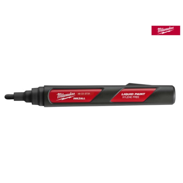 The Milwaukee Hand Tools INKZALL Liquid Paint Marker with xylene-free paint and a durable acrylic nib for the most demanding environmental conditions, working surface temperature from -10° up to +145°. Metal outer barrel for construction site durability. The paint drys within 10 seconds, water and UV resistant markings last for up to 6 months.