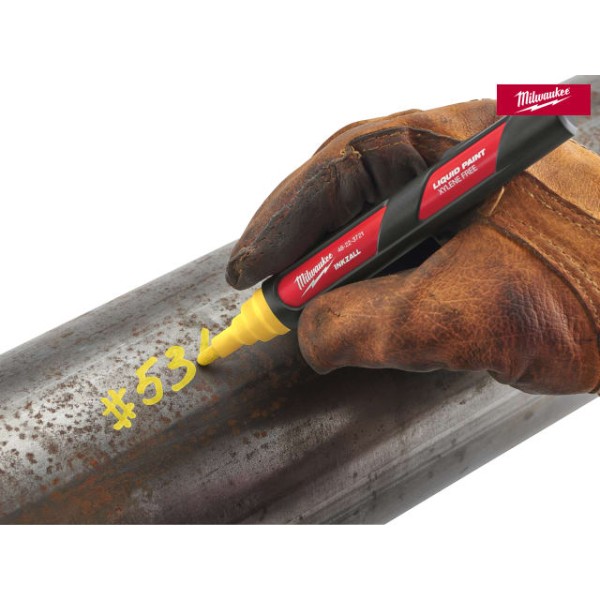 The Milwaukee Hand Tools INKZALL™ Liquid Paint Marker with xylene-free paint and a durable acrylic nib for the most demanding environmental conditions, working surface temperature from -10° up to +145°. Metal outer barrel for construction site durability. The paint dries within 10 seconds, and the water and UV resistant markings last for up to 6 months.