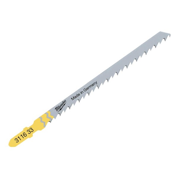 These Milwaukee Wood Jigsaw Blades are made from high-carbon steel. They have a sharp and aggressive tooth geometry, ideal for very fast cutting of wood. Suitable for cutting all types of wood and plastics.