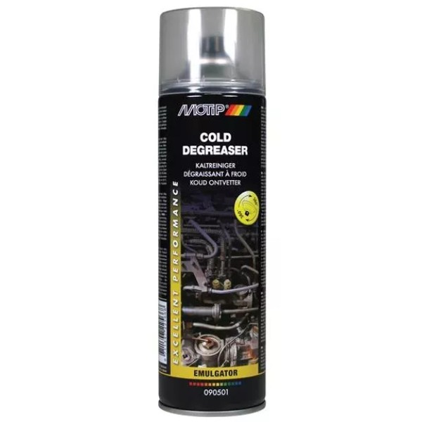 MoTip Pro Cold Degreaser Spray is an emulsifying cleaner that removes apolar preservatives, like oil, grease, wax, undercoating and tar, from treated and untreated surfaces of metal. It has high dissolving properties, leaves no residue, can be rinsed with water (emulsifying) and is non-corrosive.