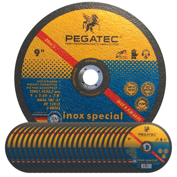 Pegatec Golden 9" (230 x 1.9 x 22.23mm) Stainless Steel Cutting Disc - PACK OF 25 has been added to your cart