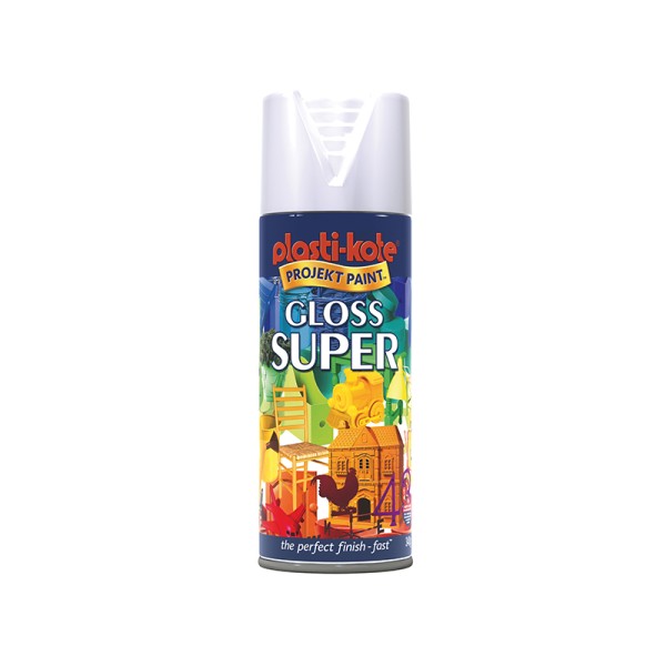 The PlastiKote Gloss Super Spray Paint is an excellent multipurpose spray paint that is tough, hard-wearing and resistant to scratches. It is also very UV absorbent, water-resistant and will not fade or yellow. Protects against rust and is fast-drying. Ideal for any decorative project inside or outside of the home and is available in many colours.