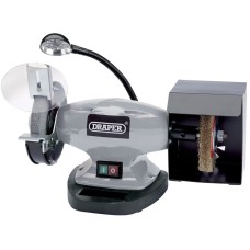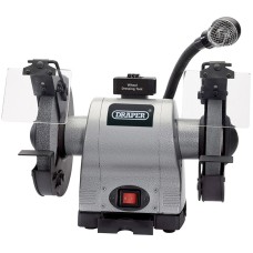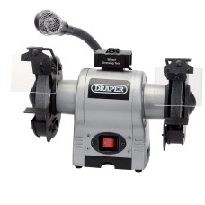 Heavy duty machine with work light, designed for use in the garage or workshop. One coarse and one fine grinding wheel, adjustable eye protection shields, spark deflectors, wheel guards and tool rests. Supplied with grinding wheel dresser and storage tray. Fitted with approved plug and cable. Display carton.Heavy dutyFitted with work lightCoarse and fine grinding wheelsEye protection shieldSpark deflectorsWheel guardsAdjustable tool restsSupplied with grinding wheel dresser and storage traySpeci..