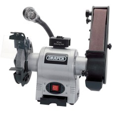 A workshop machine with one 150mm grinding wheel, 50 x 686mm sanding belt, worklight, dust extraction for sanding facility, adjustable eye protection shield, spark deflector, wheel guard, storage tray and tool rest. Fitted with approved plug and cable. Display carton.150mm grinding wheel50 x 686mm sanding beltWork lightDust extraction for beltAdjustable eye protection shieldSpark deflectorWheel guardStorage tray and tool restFitted with approved plug and cableSpecificationsBore 12.7mmGrinding Wh..