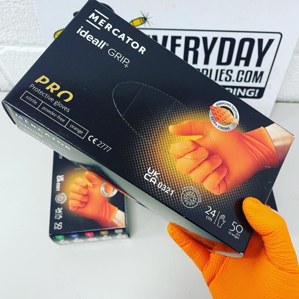 Mercator ORANGE Ideall® Powder Free 'Diamond Texture' Grip Nitrile Glove (500 Gloves) has been added to your cart