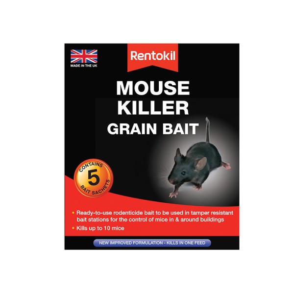 Rentokil Mouse Killer Grain Bait is a ready-to-use bait for use in a tamper resistant bait station. Kills in a single feed. For indoor and outdoor use, in and around buildings.