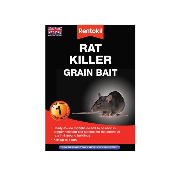 Rentokil Rat Killer Grain Bait is a ready-to-use bait for use in a tamper resistant bait station. Kills in a single feed. Suitable for indoor and outdoor use, in and around buildings. Available in packs of 1 and 3, enough for most infestations.