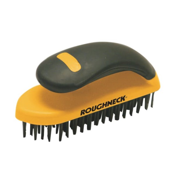 Roughneck Block Wire Brush is a 5 row block wire brush which is a 165mm (6.5 inch) brush with 18 sets of anodised carbon steel bristles and a TPR Soft Grip handle. The palm type design with tapered end is suitable for working into corners.