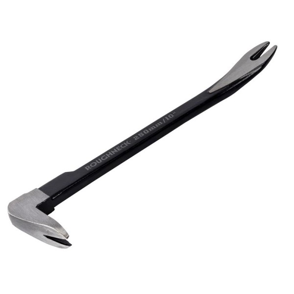 The Roughneck Bonsai Claw Bar™ is made from drop-forged alloy steel that has been hardened and tempered. With a painted finish and polished tips. Its low profile claw design means it can easily fit into small spaces. There is also a nail removing head and a heel that can be struck with a hammer.