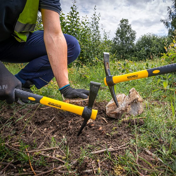 The set contains one micro pick - ideal for hard ground and removing mortar, and one cutter mattock - ideal for soft ground and cutting roots.