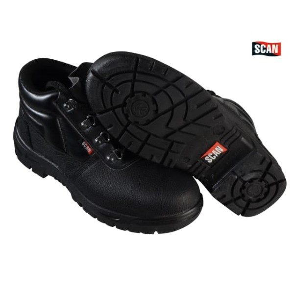The Scan Chukka Safety Boots are popular with users in the construction, agriculture and engineering industries. They have grained leather uppers that offer excellent resistance against abrasion. With anti-static, energy absorbent polyurethane soles for comfort, strength and durability. The padded ankle collars provide additional comfort whilst the steel toe caps and midsole provide protection. The soles are resistant to oil, acid, alkaline, heat (180°C) and penetration.