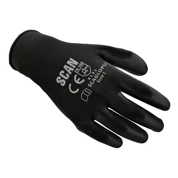Scan Black PU Coated Gloves - L (Size 9) (200 Pairs) has been added to your cart