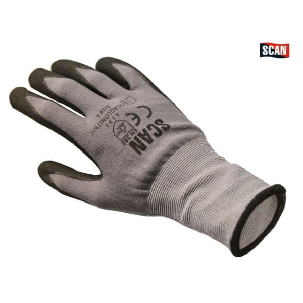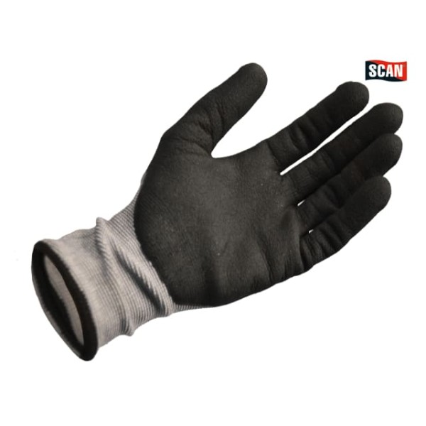 The Scan Breathable Microfoam Nitrile Gloves are manufactured from a knitted grey spandex liner with a microfoam nitrile palm coating. These gloves are suitable for use in many processes involving the handling of small metal or plastic parts, or any situation where high dexterity is required. Extremely light and breathable, the special microfoam coating offers a secure grip in both wet and dry applications, with no sticky side effect and is oil and grease resistant.