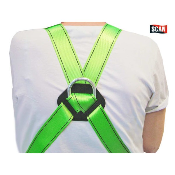The Scan Fall arrest harness is a commonly used full body harness and comes with metal D-Ring attachment and leg straps. It is suitable for most work at height applications in the construction industry (scaffolders, steel erectors etc) and has fully adjustable leg, shoulder & chest straps. The rear dorsal plate slides upwards to keep the user upright after a fall and it has a robust metal front attachment point with polyester webbing and front and rear attachment.
