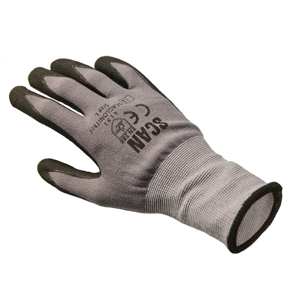 These Scan Breathable Microfoam Nitrile Gloves are manufactured from a knitted grey spandex liner with a microfoam nitrile palm coating. Suitable for use in many processes involving the handling of small metal or plastic parts, or any situation where high dexterity is required. Extremely light and breathable, the special microfoam coating offers a secure grip in both wet and dry applications, with no sticky side effect. They are also oil and grease resistant.