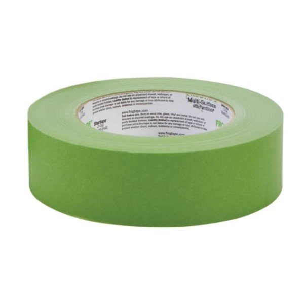 Shurtape FrogTape Multi-Surface is a medium adhesion painter's tape designed for use on cured painted walls, wooden trim, glass and metal. After application it will remove cleanly from most surfaces for up to 21 days (or 7 days in direct sunlight). The only tape with PaintBlock Technology.