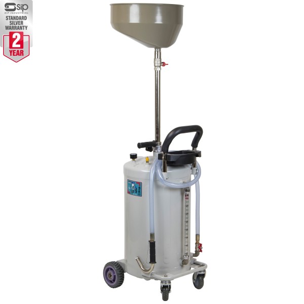 The SIP 80ltr Gravity Oil Drainer is a gravity-operated unit designed to easily, safely, and cleanly collect waste oils from a range of vehicle assemblies, including engines and gearboxes, via a large collection tray and heavy-duty steel tank.