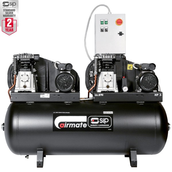 The SIP B3800/270 Tandem Compressor offers powerful performance through tandem twin B3800 pumps and robust 3hp motors, which means continued operation should a motor or pump suffer failure. All of this is controlled by a central control box and staggered starting which reduces current draw.