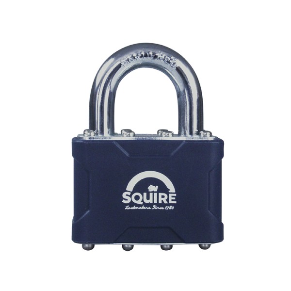 The Squire Stronglock Laminated Padlocks are a medium to high security durable padlock, with a hardened steel shackle with a covered steel padlock body with anti corrosion finish. The 4-pin tumbler lock mechanism gives over 1,000 key variations.