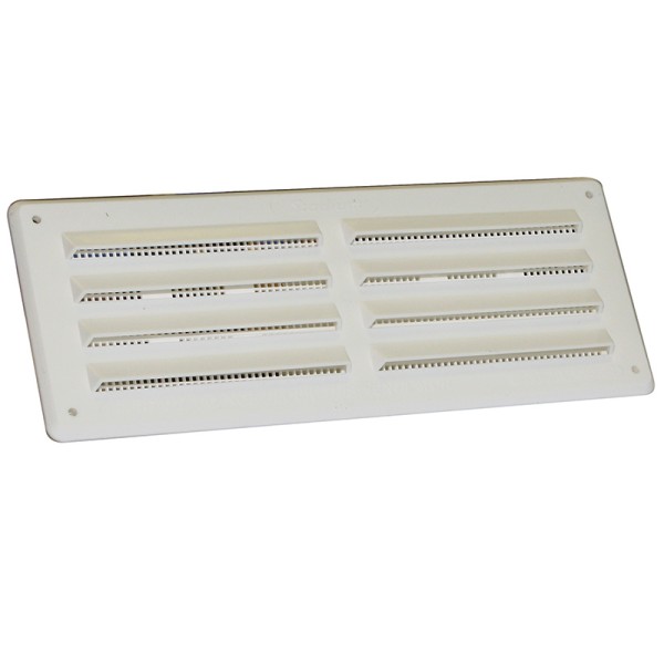 Stadium Louvre Vent with a removable, washable flyscreen. Open louvres allow a high airflow. Made of durable, white plastic.