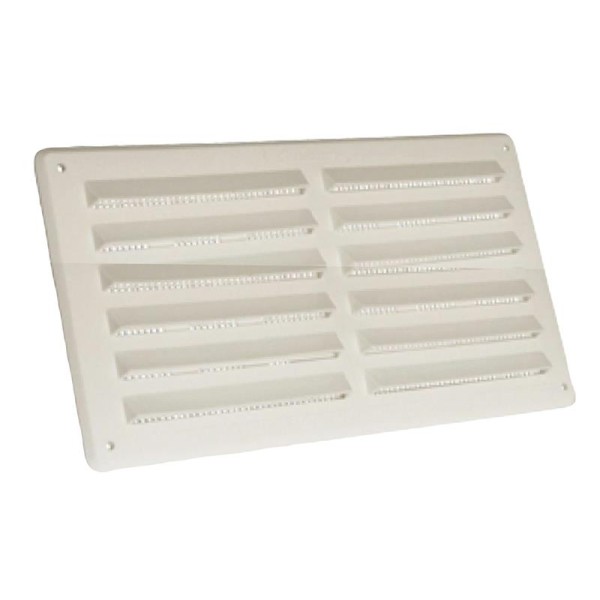 Stadium Louvre Vent with a removable, washable flyscreen. Open louvres allow a high airflow. Made of durable, white plastic.