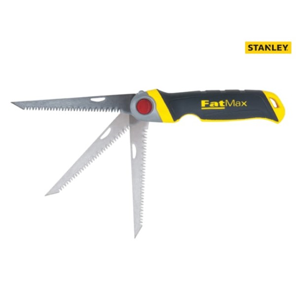 The Stanley FatMax folding jabsaw has a three blade locking angle mechanism at 90° , 135° and 180°. Its triple bevelled toothing allows easier cutting that is up to 50% faster.
