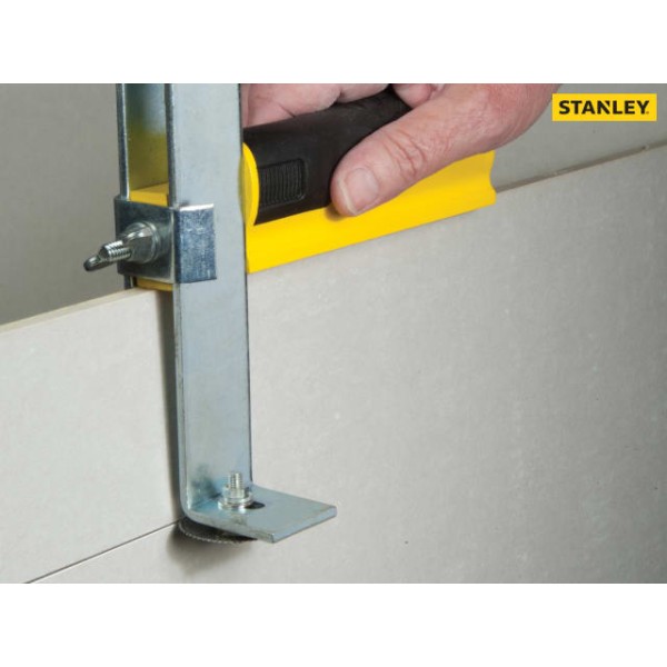 The Stanley 1-16-069 drywall stripper has twin cutting blades to cut both sides of the drywall, adjustable cutting depth and an easy to grip bi-material handle.