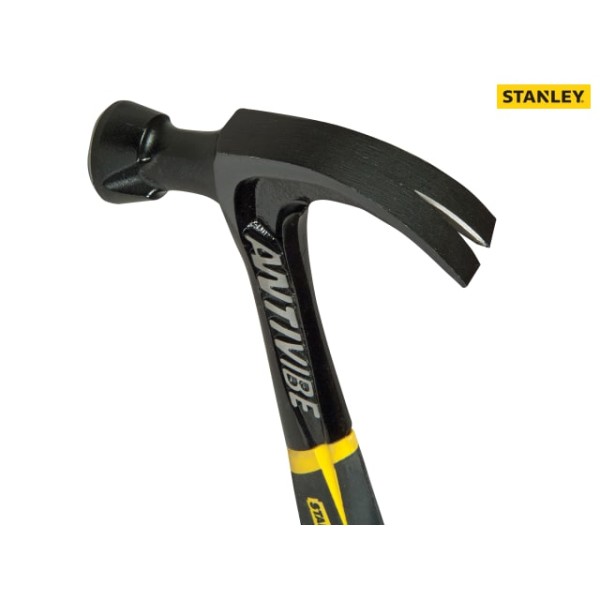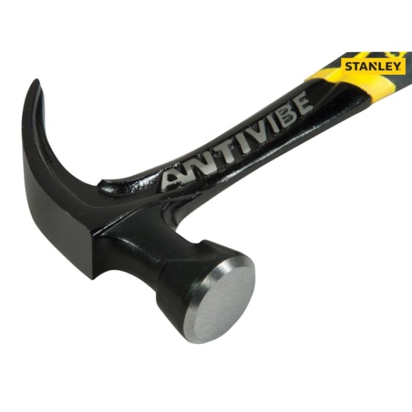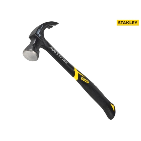 The Stanley FatMax® Antivibe All Steel Curved Claw Hammer has a one-piece forged construction for durability and balance. With an Antivibe tuning fork to dampen vibration and a soft grip for comfort and control.