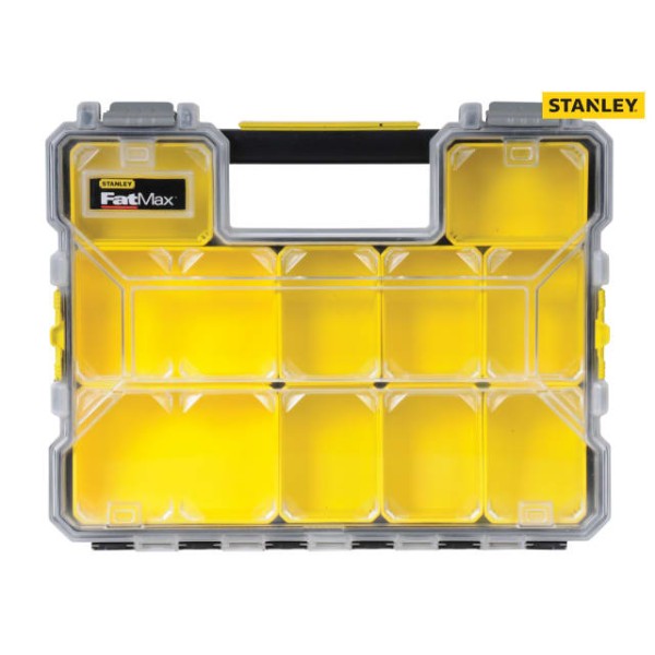 This Stanley FatMax Professional Organiser is ideal for storing and organising small parts and accessories, such as fixings, nuts, bolts etc. It is supplied with 10 removable storage cups for easy access, allowing individual cups to be conveniently moved to where needed, without having to have the whole organiser near by - ideal for situations where space is limited.