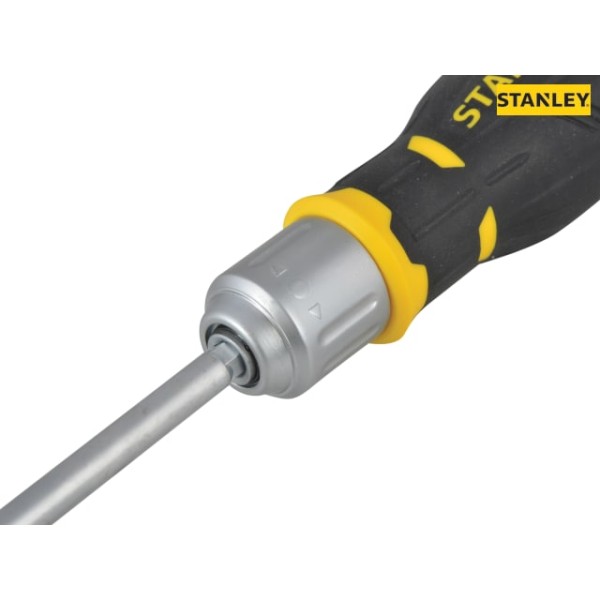 The Stanley FatMax Ratchet Screwdriver has a fine 45 tooth ratchet offering very high torque (3 times human strength for tightening). Fitted with a large soft grip handle with bit storage for added comfort and convenience. The three position ratchet enables clockwise, anti-clockwise and locked positions.