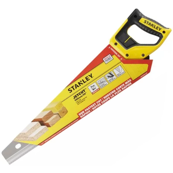 The Stanley Tools Jet Cut Rough Handsaw features three cutting edges for faster and smoother cutting. Ideal for cutting softwood, plasticized chipboard and PVC.