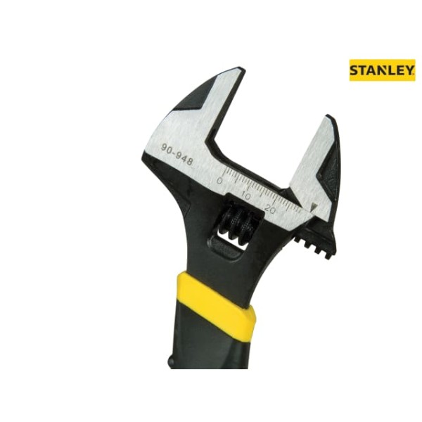 The Stanley MaxSteel adjustable wrenches have a narrow head design for limited space applications and Laser-marked SAE and metric jaw scale for easy fastener size. The forged alloy-steel body increases strength and the extra wide jaw capacity opens wider than standard adjustable wrenches.