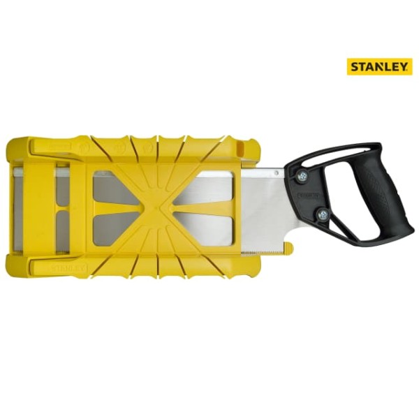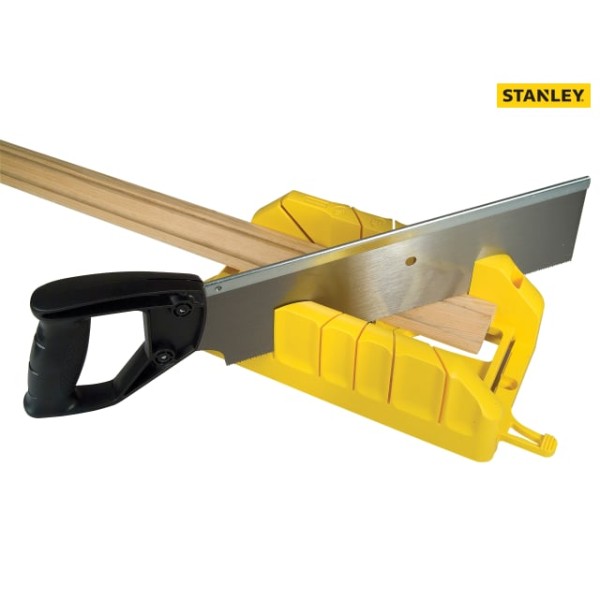 All in one, easy-to-use mitre box. 90° , 45° and 22.5° slots. 300mm length with a patented storage system for the saw.