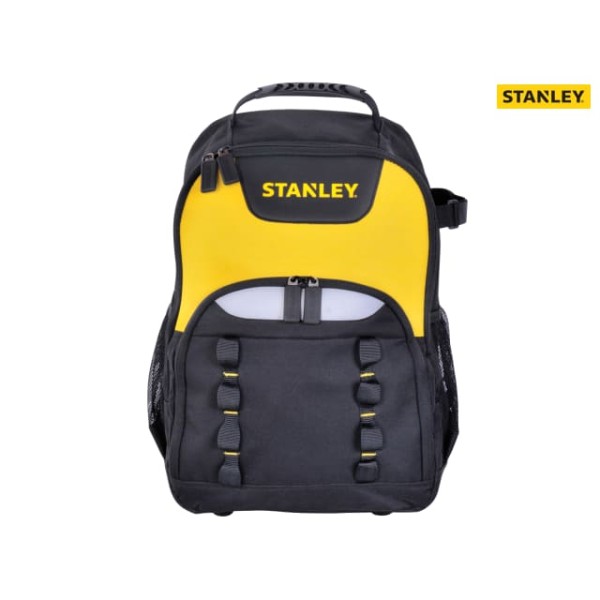 The Stanley Tool Bag Backpack has been designed for easy hands-free tool transport that spreads the weight of the tools instead of lifting in one hand. It contains a separate laptop/power tool compartment, that is large enough for a 15.6in laptop. With an additional small front compartment for personal storage and two side mesh pockets.