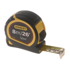 1 x Tylon™ Pocket Tape 8m/26ft that has a corrosion resistant long life nylon coated blade with bi-material case for improved grip and positive blade lock for accurate measurements. With belt clip. and 3-rivet tru-zero hook, reduces risk of breakage.