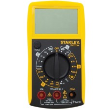 The Stanley Intelli Tools AC/DC Digital Multi-Meter measures voltage, amperage and resistance. Its LCD Screen displays large numbers so they're easy to read and has a durable over moulded housing for increased shock resistance and comfortable handling. The integrated unit stand provides a stable base for hand free use of the unit. Powered by a 9 Volt battery which is supplied. Technical Specs Input Power: 1 x 9 Volt Battery (Supplied). Class: CAT III. Voltmeter Range: 0-300 Volts. Ohmm..