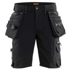 Craftsman shorts in stunning 4-way stretch based on Blaklader's progressive craftsman trousers 1998. On the shorts variant 1987, the nail pockets are removed in comparison to their twin 1988, but meet all the high standards of comfort and functionality.Function Main material 93% polyamide, 7% elastane, Dobby, water repellent finish, 4-way stretch, 295 g/m² Functionality 4-way stretch Reinforcement Reinforced ruler pocket and back pockets Details Plastic zipper fly Wide loops at back and side..