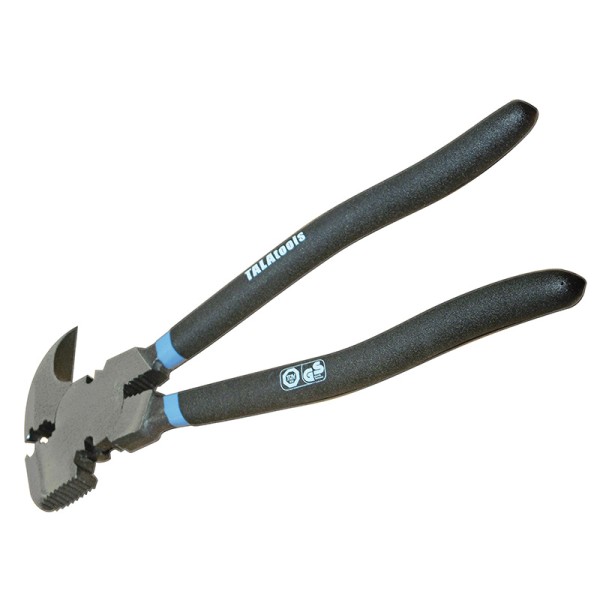 These TALAtools Pro Fencing Pliers are made from forged alloy tool steel with a polished head and induction hardened cutting edge. A special opening in the head allows both wire and staple to be gripped. It also features a corrugated hammer head. Professional quality.