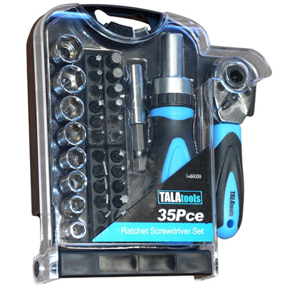 TALAtools Ratchet Screwdriver Bit Set with the most commonly required bits and sockets. Supplied in a handy clear case.