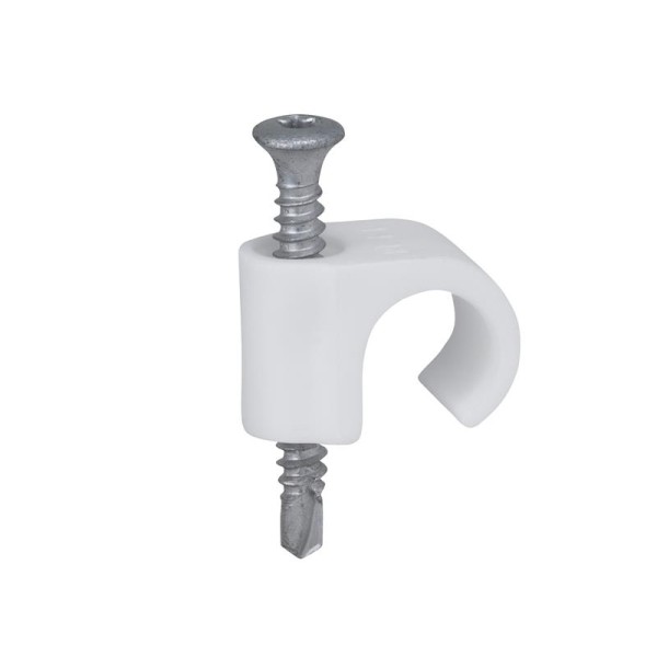 Box of 100 tillex® Drill Clips Round 14-18, in White, TX20, with screw for round lead. Its screw has a drill shaped tip allowing it to mount directly in sheet metal, max. 2.0mm, without having to drill a pilot hole.