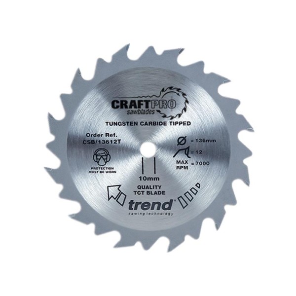 This Trend CraftPro Circular Saw Blade is designed for professional use in softwood, hardwood, plywood, soft fibre, plasterboard, fibreboard, cement bonded board and particleboard. The blade has tungsten carbide tipped teeth which allow cutting of abrasive materials. Silver braze technology ensures that the tips are bonded securely to the body. The blade body is made from high-grade alloy steel which is precision ground to maintain flatness and is hardened and tempered to maintain trueness.