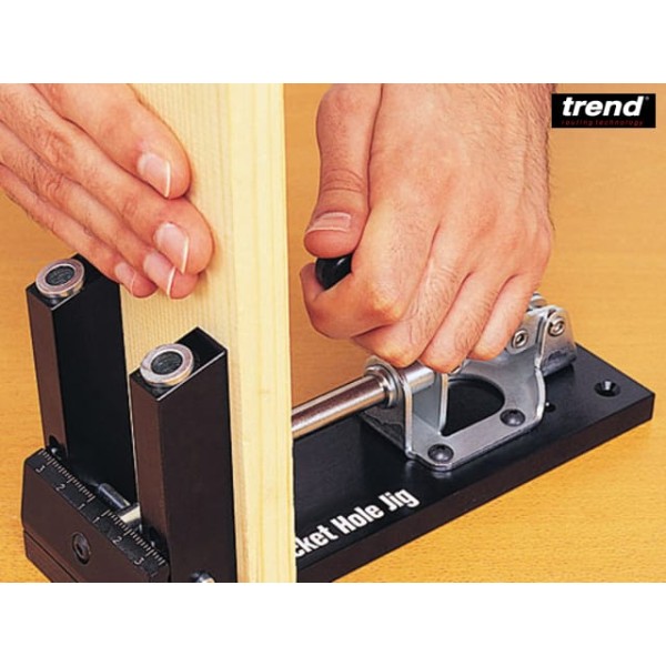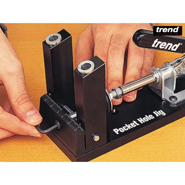 The Trend PH/JIG Pocket Hole Jig is great for fast and accurate joining of timber and plywood, giving strong instant joints. Solid hardened bushes with a variable pitch of 29 to 63mm.